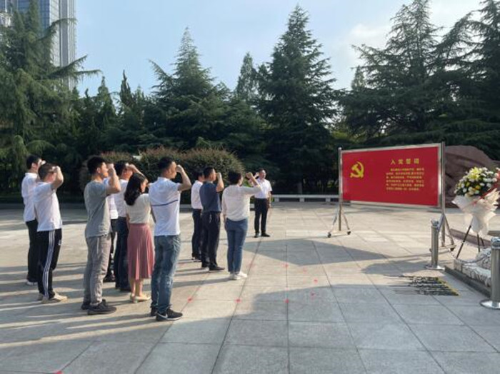 在紀(jì)念館前,黨支部書記陳景麗同志以《百年黨史,紅色傳承》為主題為全體黨員上了一堂生動(dòng)的黨課,號(hào)召黨員干部要弘揚(yáng)先輩的革命精神,發(fā)揮黨員帶頭作用,尤其要做到三點(diǎn),一是堅(jiān)定信心,立場(chǎng)堅(jiān)定跟黨走;二是勇于擔(dān)當(dāng),團(tuán)結(jié)奮斗做表率;三是甘于奉獻(xiàn),搶抓機(jī)遇有作為。