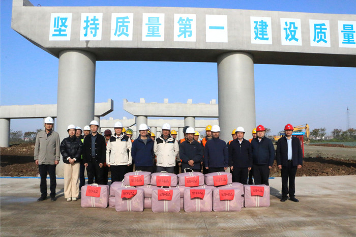 在施工現場,全體人員參觀漢南長江大橋及接線工程項目智慧梁場建設,并開展一線建設者冬季“送溫暖、送慰問”活動。隨后,三方黨支部共同召開支部共建大會暨“同心共建都市環線,攜手共筑強國之路”主題黨日活動,重溫入黨誓詞,原原本本學習《黨章》,觀看《潮起荊楚--習近平總書記赴湖北考察調研紀實》視頻資料,集中學習《習近平總書記關于交通強國的重要論述的重點意義和核心要義》、加快建設交通強國大會相關會議精神等內容,簽訂三方基層黨建共建協議書。