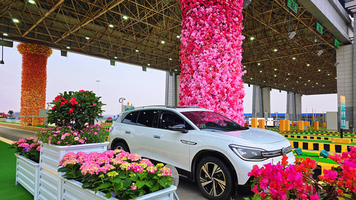 五彩花卉扮靚收費站 向來往司乘發出春天的邀請