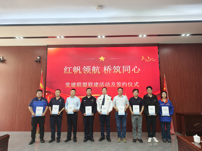 為充分發(fā)揮黨建引領(lǐng)作用,匯聚各方合力,全周期保障漢南長江大橋建設(shè)期間長江干線水上交通安全和防污染,2025年4月23日,漢南橋公司黨支部攜手武漢金口海事處黨支部與長航公安、經(jīng)開水務(wù)、牌洲航道處、嘉魚縣交通局、經(jīng)開交通中心、中鐵大橋局、中交路建等九家涉水管理部門及項目建設(shè)方黨支部開展“紅帆領(lǐng)航、橋筑同心”黨建聯(lián)盟聯(lián)建活動。武漢海事局政委、黨委副書記、紀委書記石欽與九家黨支部書記參加活動。