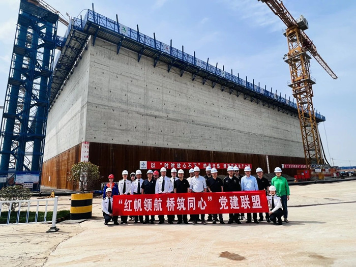 全體黨員先后參觀了漢南長江大橋南岸錨錠及主塔施工現(xiàn)場,項目負責人詳細介紹了項目概況、施工進展、關(guān)鍵技術(shù)、現(xiàn)場管控重難點以及下一步施工計劃。各家單位就項目建設(shè)期間的水上交通安全監(jiān)管日常聯(lián)動協(xié)作、強化源頭管理與現(xiàn)場監(jiān)管協(xié)同配合、安全保障、應(yīng)急響應(yīng)等具體工作任務(wù)達成了一致。