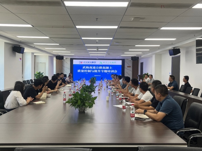 為深入推進“干部素質提升年”專項行動,武漢交投集團組織開展的“混凝土質量控制與提升專題培訓會”近日在武梅高速建設管理有限公司召開。武梅高速項目以“謀定先規(guī),質啟新章”之姿,聚焦混凝土質量這一工程建設關鍵環(huán)節(jié),提前開展專業(yè)培訓,彰顯項目對質量管控的前瞻布局與深度踐行。武梅高速項目各參建單位及培訓單位江蘇蘇博特新材料股份有限公司齊聚,為打造高品質工程筑牢基礎。