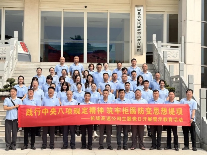 在紀念中國人民抗日戰爭勝利暨世界反法西斯戰爭勝利80周年之際,為進一步深入踐行中央八項規定精神學習教育,持續深化黨風廉政建設,認真落實公司“干部素質提升年”要求,9月4日,機場高速公司50余名黨員干部前往湖北省黨風廉政警示教育基地開展“踐行中央八項規定精神 筑牢拒腐防變思想堤壩”主題黨日活動。