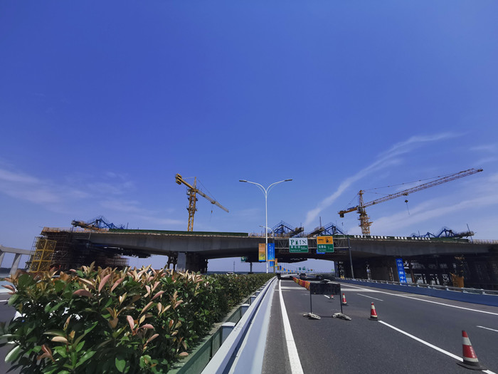 作為武漢市的門戶道路,機場二通道是武漢機場通往市區主要出行通道,車流量大、社會關注度高、安保任務重,施工期間歷經十余次國家、省、市等各級領導出行安保任務。為確保機場二通道車流通暢和道路上方施工安全,北四環公司主動作為,在各級部門的支持下,堅決推行“四個高度”安全管理理念,即安全措施高度保障、安全氛圍高度營造、安全費用高度投入、安全管理高度有效,有力踐行了“不讓一粒石子落入機場二通道內”的承諾。與此同時,通過科學組織、統籌安排,北四環公司在施工過程中進一步優化混凝土配合比及施工方案,嚴控施工過程,對每道工序進行嚴格把關,最終實現了懸澆梁精準合龍,成橋線形平順、箱體內實外美的質量目標。