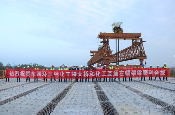 由武漢交投集團投資建設的東四環線高速公路起于武漢繞城高速北湖互通,終點與青山長江公路大橋銜接,全長8.182公里,雙向8車道,設計車速100公里/小時,共建3座互通立交橋及2座特大橋。此次架梁合攏掀起了2019年東四環線“沖刺四季度,力保三年攻堅”勞動競賽活動的熱潮,向2019年底從北湖互通至青山長江大橋主線貫通邁進了一大步,為確保2020年底全面建成東四環線工程奠定了堅實的基礎。