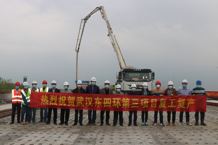 3月26日下午3點(diǎn)28分,東四環(huán)線高速公路項(xiàng)目化工互通特大橋橋面系順利澆筑,標(biāo)志著由武漢交投集團(tuán)投資建設(shè)的武漢北湖至建設(shè)段高速公路(東四環(huán)線)項(xiàng)目正式復(fù)工,沉靜兩個(gè)月的工地終于按下了“啟動(dòng)鍵”。