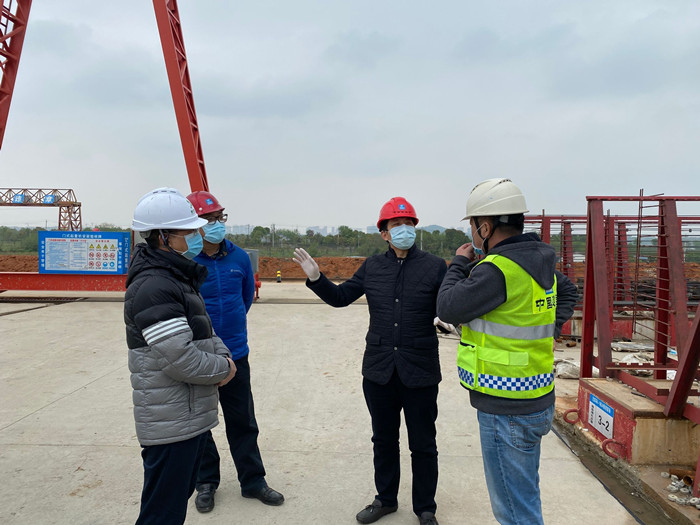 3月31日下午,武漢市紀委駐市交通運輸局紀檢組組長楊嶠,市交通局總工程師王益光,建設管理處副處長王濤一行赴交投集團北四環線項目現場檢查指導疫情防控和復工復產相關工作,市交投集團總經理陳順平,總工程師王愛民陪同檢查。