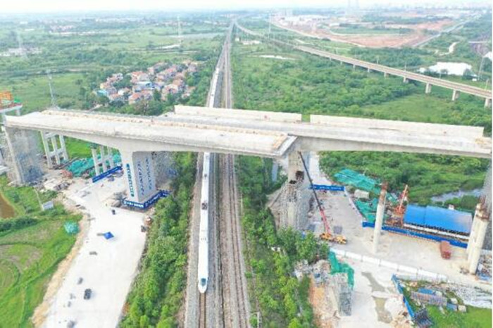 本次橋梁轉體施工依次跨越滬蓉高鐵下行線、麻武線、黃陂貨車聯絡線、滬蓉高鐵上行線四條既有營業線,作業空間高、臨近營業線距離近、安全風險高、施工難度大,同時也是湖北省首次公路跨高鐵雙幅連續轉體施工。施工過程中,工作人員搶抓夜間“天窗點”,運用BIM技術構建的轉體橋模型,利用測量機器人、物聯網無線傳輸技術,對轉體過程實時跟蹤,為橋梁姿態與控制參數提供實時監測及預警,保證安全平穩轉體,成功將誤差控制在2毫米以內,同時最大程度上減少對運營鐵路的干擾。