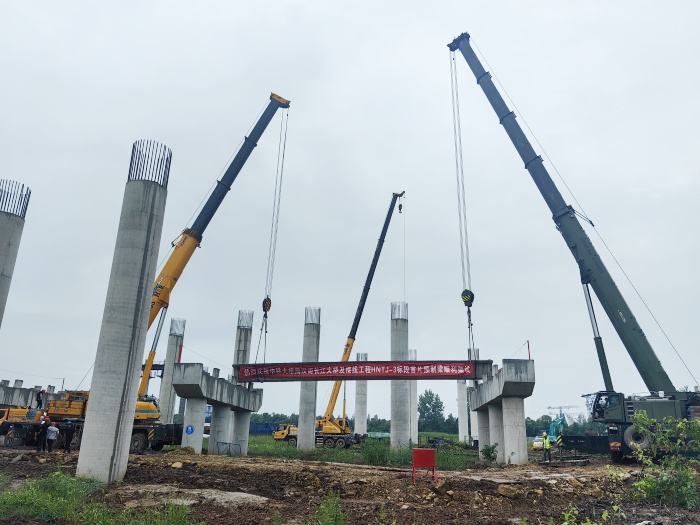 近日,隨著起重機巨大的吊鉤緩緩升起,由武漢城發集團所屬交投集團漢南橋公司投資建設的漢南長江大橋及接線工程HNTJ-3標項目首榀預制箱梁穩穩落在橋墩上,標志著該項目正式進入橋梁上部結構施工階段,為項目如期通車奠定堅實基礎。