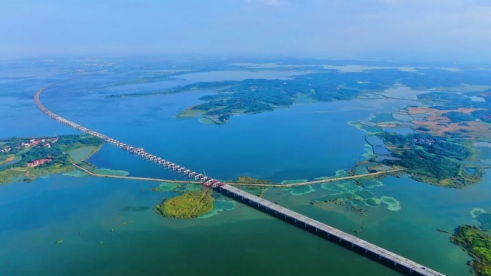 面對挑戰,建設團隊創新攻堅。斧頭湖底多為軟基,承載力不足且施工復雜,團隊首創 “以直代曲” 柔性設計,通過 212 座支棧橋精密調校,實現高精度控制。針對深水軟基,應用深樁防腐工藝,確保入土 22.3 米的鋼管樁抵御水位沖擊;采用輕量化組合結構提升效率。還創新應用“鋼護筒導向架 + 整體吊裝”工藝,424 個鋼板樁圍堰用 “分幅施工法”,提升抽水清淤效率。