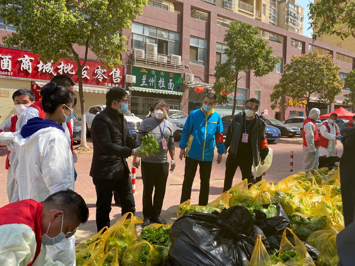 3月16日凌晨,集團下沉干部鄭照在“武漢志愿者愛心群”里得知黃陂武湖農場有數萬斤新鮮生菜要對外捐贈的消息。他第一時間與農場負責人取得聯系,詳細了解蔬菜捐贈 的相關流程手續后,立刻向所在單位武漢交投集團黃悟公司總經理羅茂盛做出詳細匯報。羅茂盛站位一線、靠前指揮,制定捐贈方案,火速發出“集結令”,迅速組織在漢全體干部職工參與到愛心蔬菜的采摘、運輸及分發工作中來。而在此之前,鄭照多方奔走、積極協調已為自己所下沉的寧松社區捐贈了2000斤愛心菜、500袋食鹽和部分防護用品。