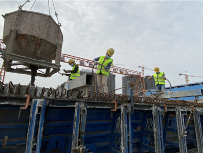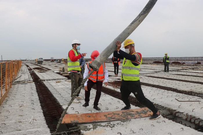 東四環(huán)高速公路項(xiàng)目復(fù)工后首次混凝土澆筑