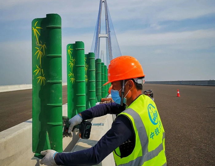 在“世界級尺度”之外,青山橋還有諸多細節之美。邊側防撞護欄每四節增設一塊浪花造型的裝飾板,為鋼筋鐵骨添了幾分靈動;外側欄桿上加入黃鶴樓等造型,與江城各地標建筑遙相呼應;橋面中間的隔離欄上加裝綠色竹節造型的防眩板,既醒目又清新……觀者賞心悅目之余,不禁贊嘆建設者的用心與巧思。