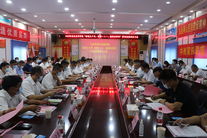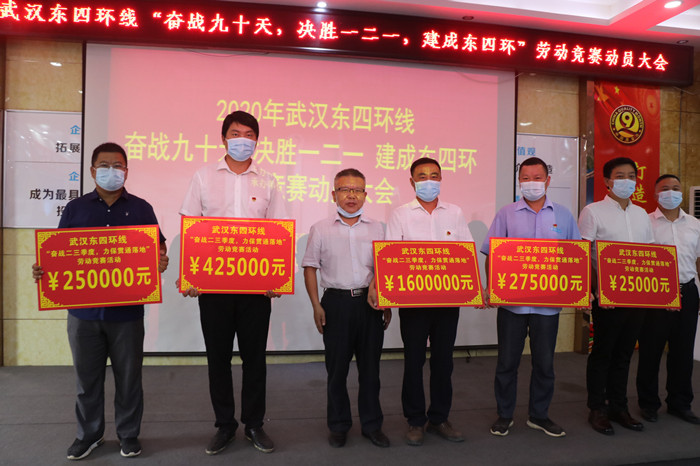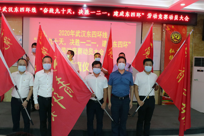 為進(jìn)一步落實省委省政府“十三五”高速公路規(guī)劃部署,貫徹湖北省高速公路“三年攻堅”任務(wù)完美收官,堅定不移完成省交通運(yùn)輸廳對交投集團(tuán)東四環(huán)線高速公路項目建設(shè)任務(wù)要求, 2020年9月9日,交投集團(tuán)東四環(huán)公司組織召開了“奮戰(zhàn)九十天、決勝一二一、建成東四環(huán)”勞動競賽動員大會,吹響東四環(huán)決勝之戰(zhàn)、收官之戰(zhàn)的沖鋒號角。集團(tuán)總經(jīng)理陳順平出席動員大會并講話,總經(jīng)理助理、東、西四環(huán)公司總經(jīng)理王先強(qiáng)主持大會。