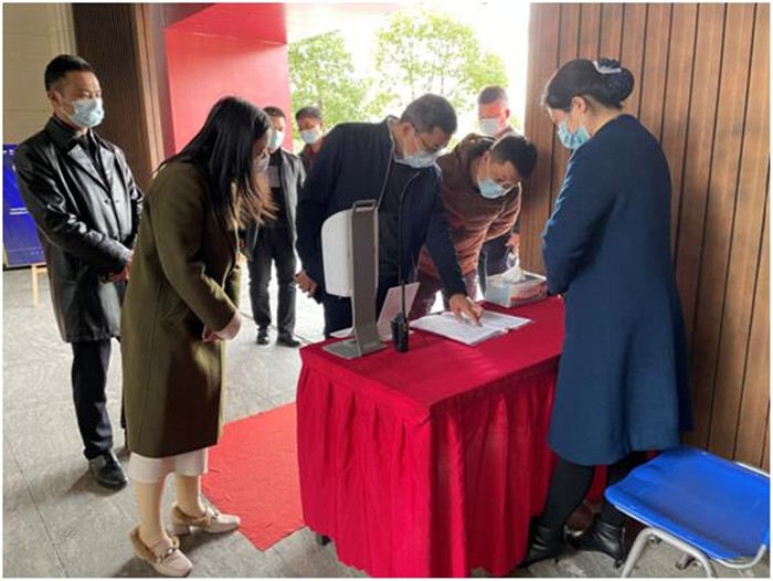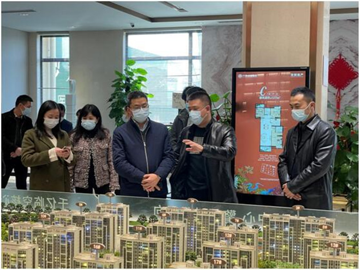 在各項(xiàng)目營銷中心,尹水章對(duì)春節(jié)期間照常上班的工作人員送上新年的祝福,隨后對(duì)疫情防控工作情況進(jìn)行檢查。